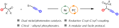 [2] Wang, H.; Wu, X.; XU, T. Enantioconvergent Reductive C(sp)-C(sp3) Cross-Coupling to Access Chiral α-Alkynyl Phosphonates Under Dual Nickel/Photoredox Catalysis. Angew. Chem., Int. Ed. 2023, 62, e202218299.